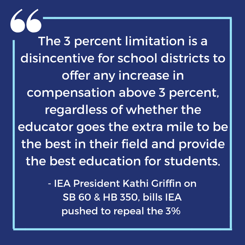 The IEA initiated a bill to repeal the 3 percent salary limit law.