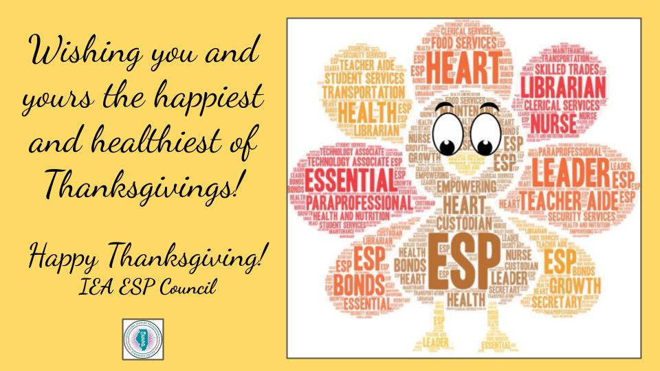 As you begin this festive time of year the ESP Council wants to wish you a safe and healthy Thanksgiving Day and holiday season. If you are traveling… please be careful. If you are staying home, may your home be filled with laughter.