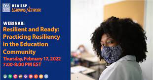 ΝΕΑ ESP NATIONAL LEARNING NETWORK WEBINAR: Resilient and Ready: Practicing Resiliency in the Education Community Thursday, February 17,2022 6:00-7:00 PM Central time. Join us for a webinar to learn more about the power of resiliency! Get tips and strategies on resiliency and self-regulation to support you in your role as a mentor and model for students and fellow educators.