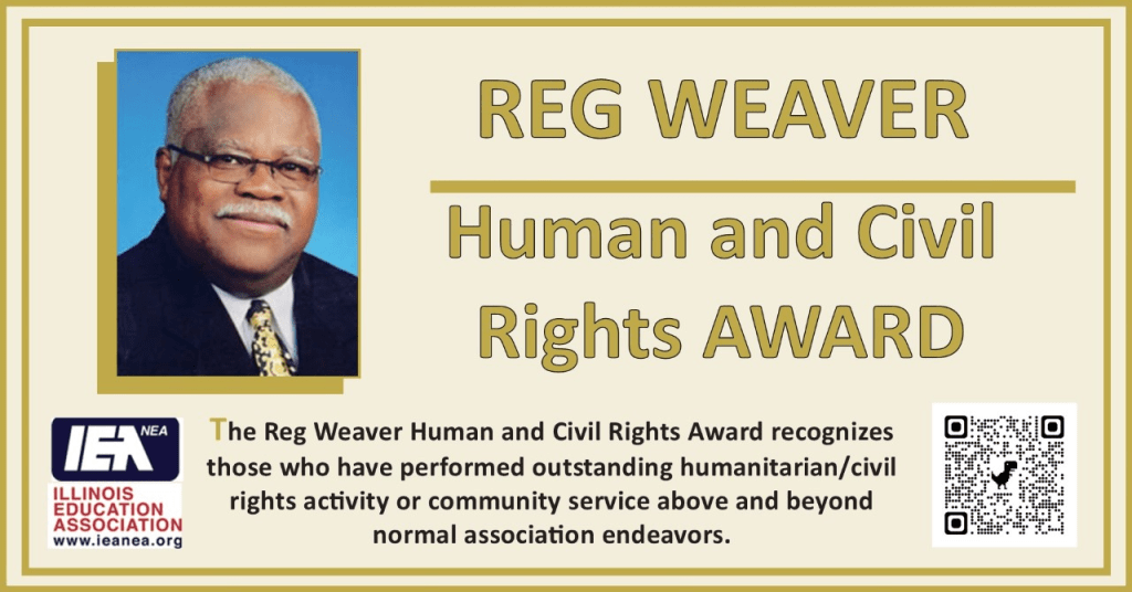 An individual IEA-NEA member or an IEA-NEA group may be nominated for this award, which recognizes those who have performed an outstanding humanitarian/civil rights activity or community service above and beyond normal association endeavors.