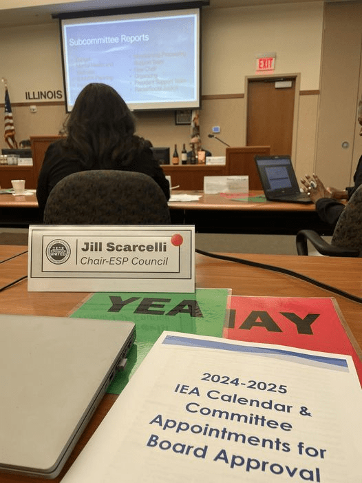 Education Support Professional Council consists of thirteen (13) members all of whom are ESP school employees and members of the Illinois Education Association. The ESP council's goal is to represent and support ESP's throughout Illinois.