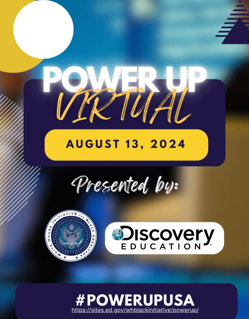 Power Up is a series of summits hosted by the White House Initiative on Advancing Educational Excellence, Equity, and Economic Opportunity for Black Americans and Discovery Education. These events aim to directly engage the Black community, local organizations, national stakeholders, and federal agencies on important issues.